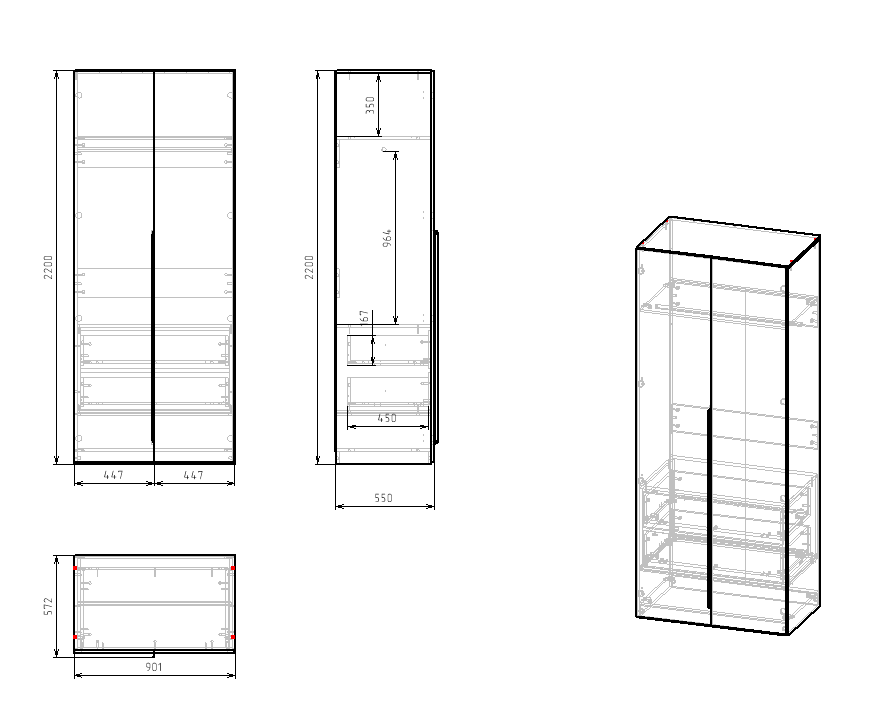 ширина 900 х высота 2200 х глубина 550 мм