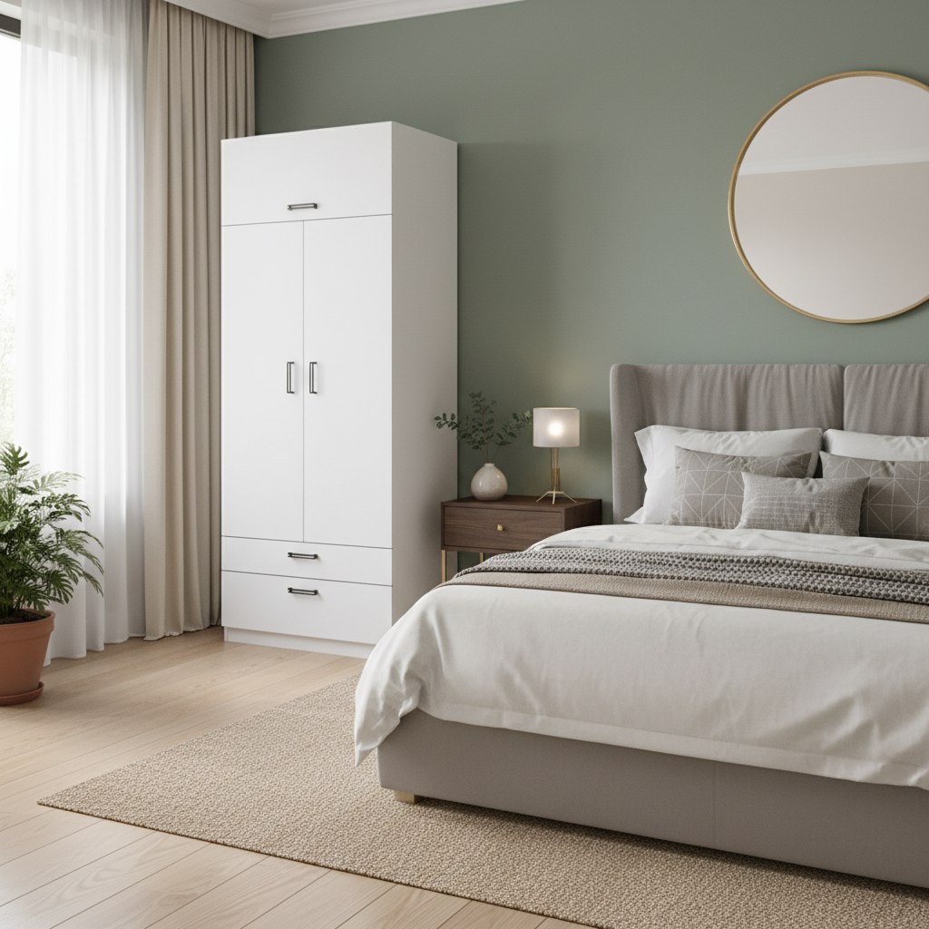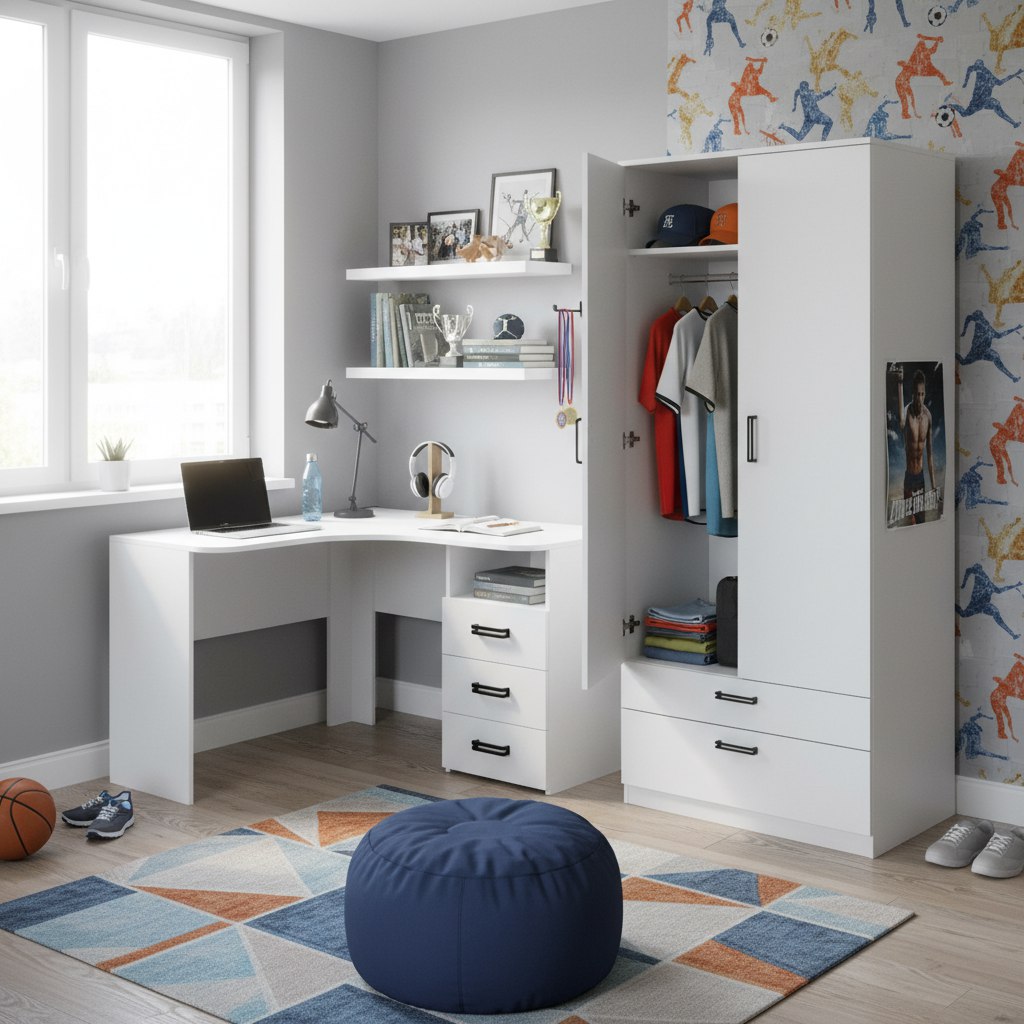 Мебель выполнена из сертифицированного, качественного, экологически чистого ЛДСП класса Е0,5 в белом цвете.