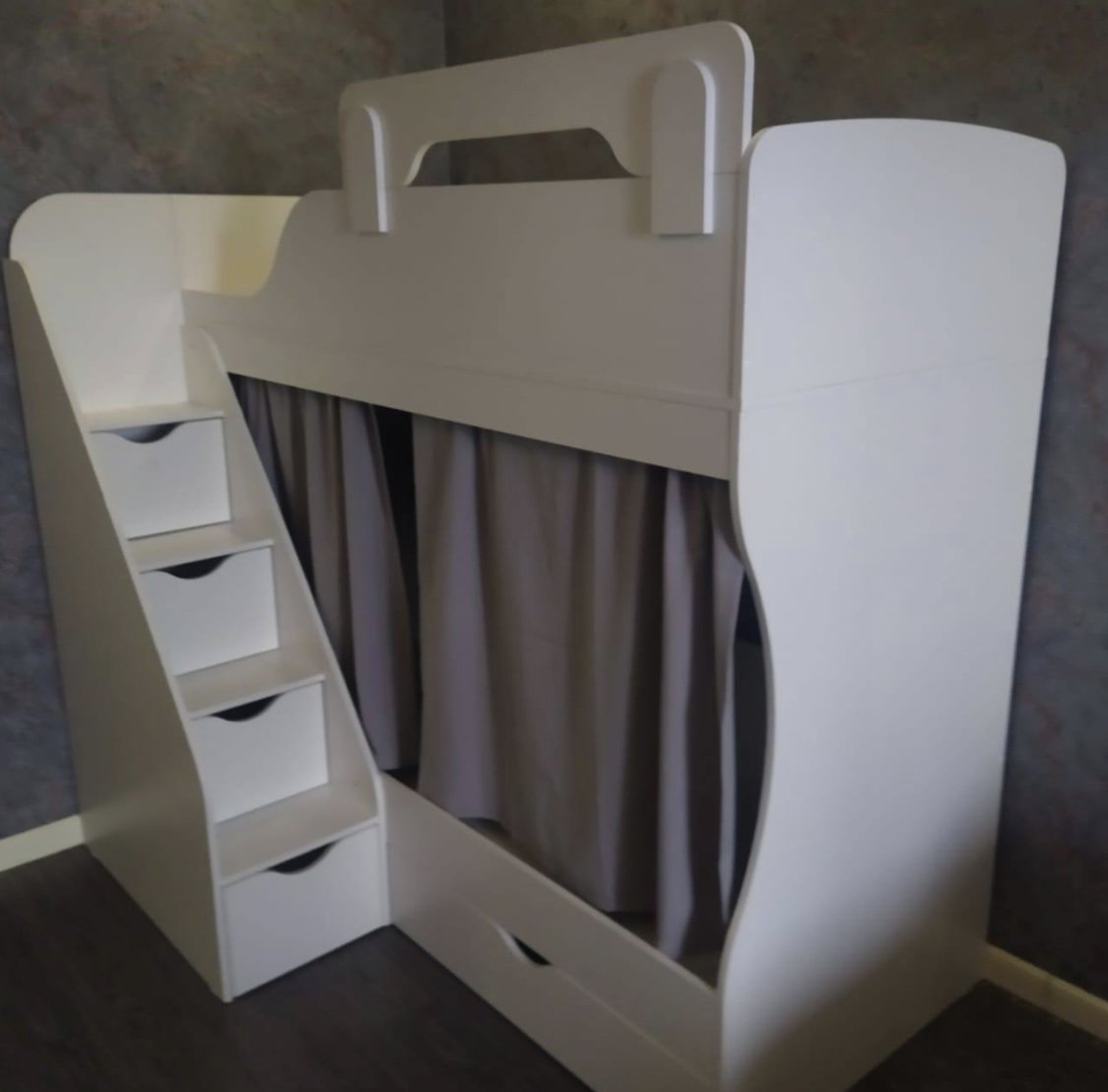 В нижней части лестницы также имеется выдвижной ящик для игрушек.