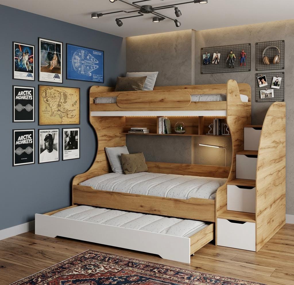 Двухъярусная кровать БИГ (дуб каньон + белый) 120х200
