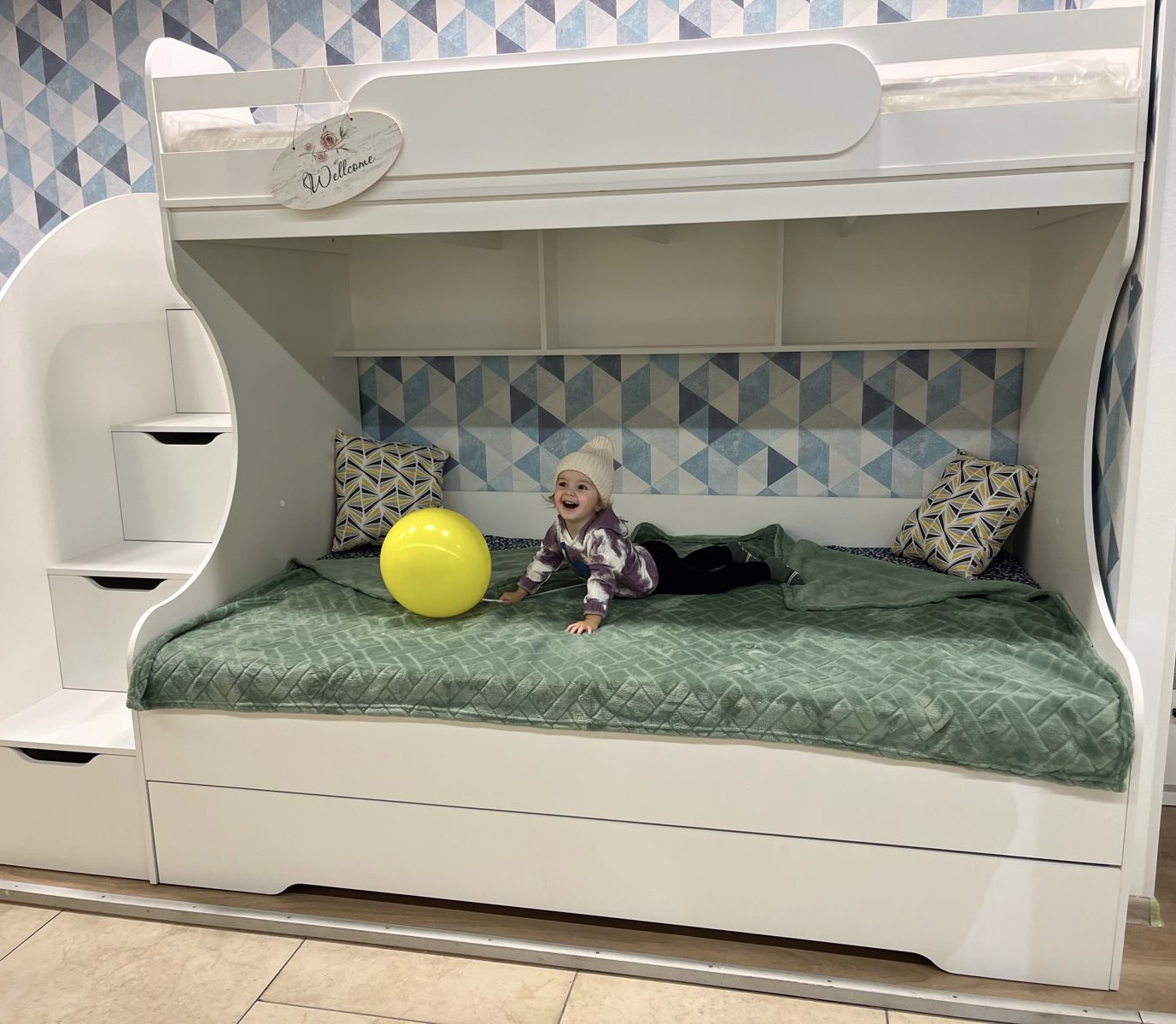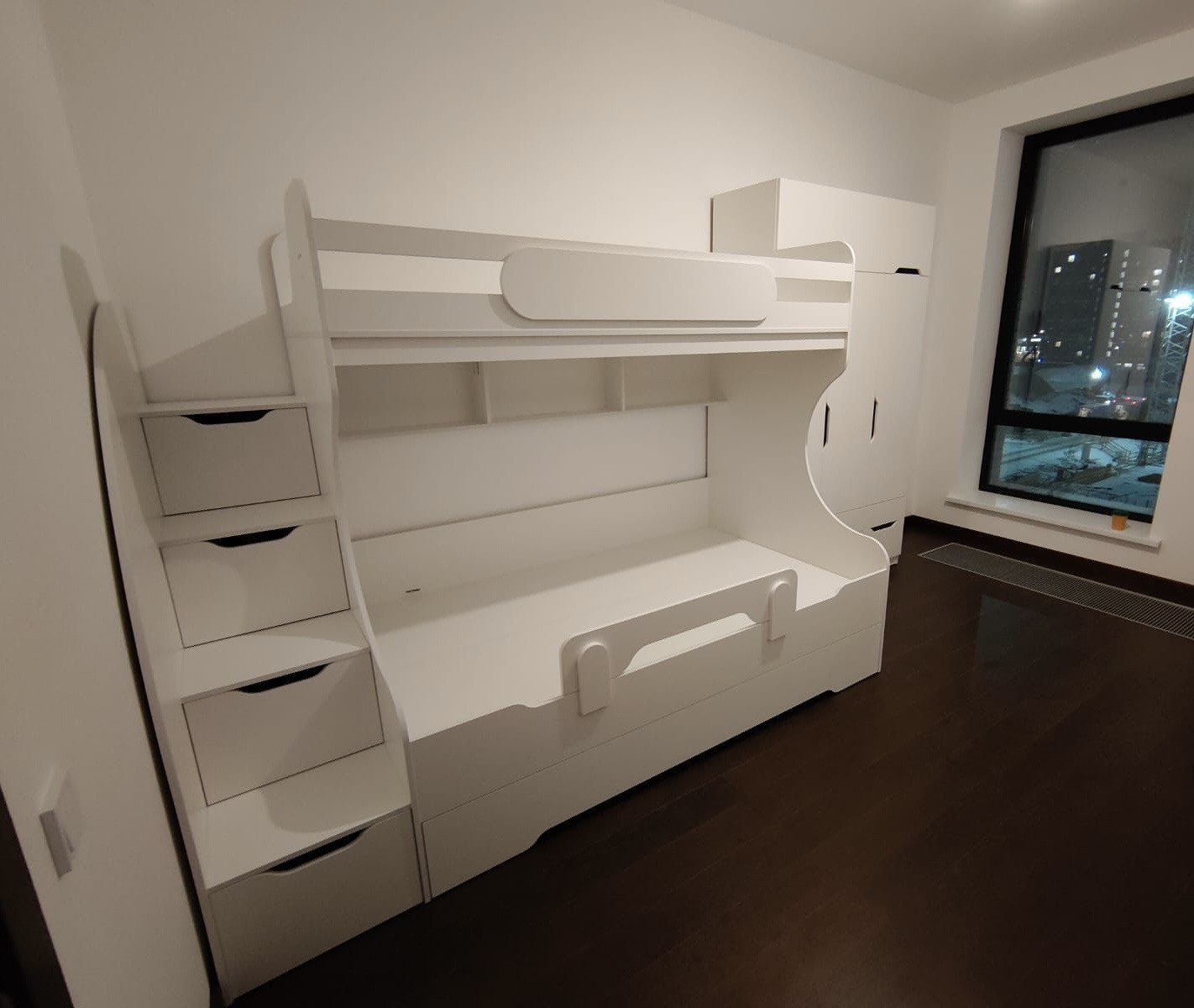 * В лестницу встроены выдвижные ящики для игрушек.