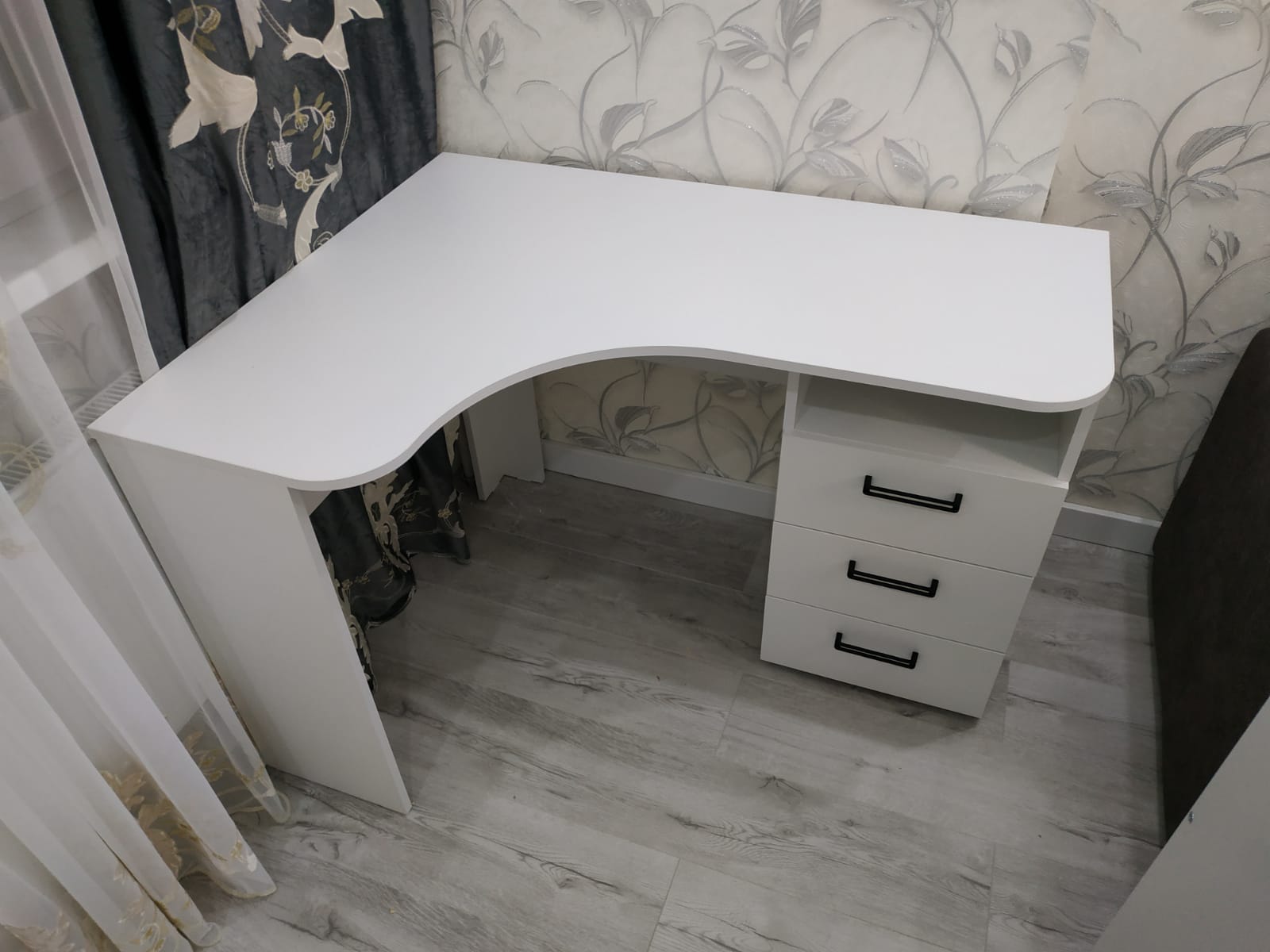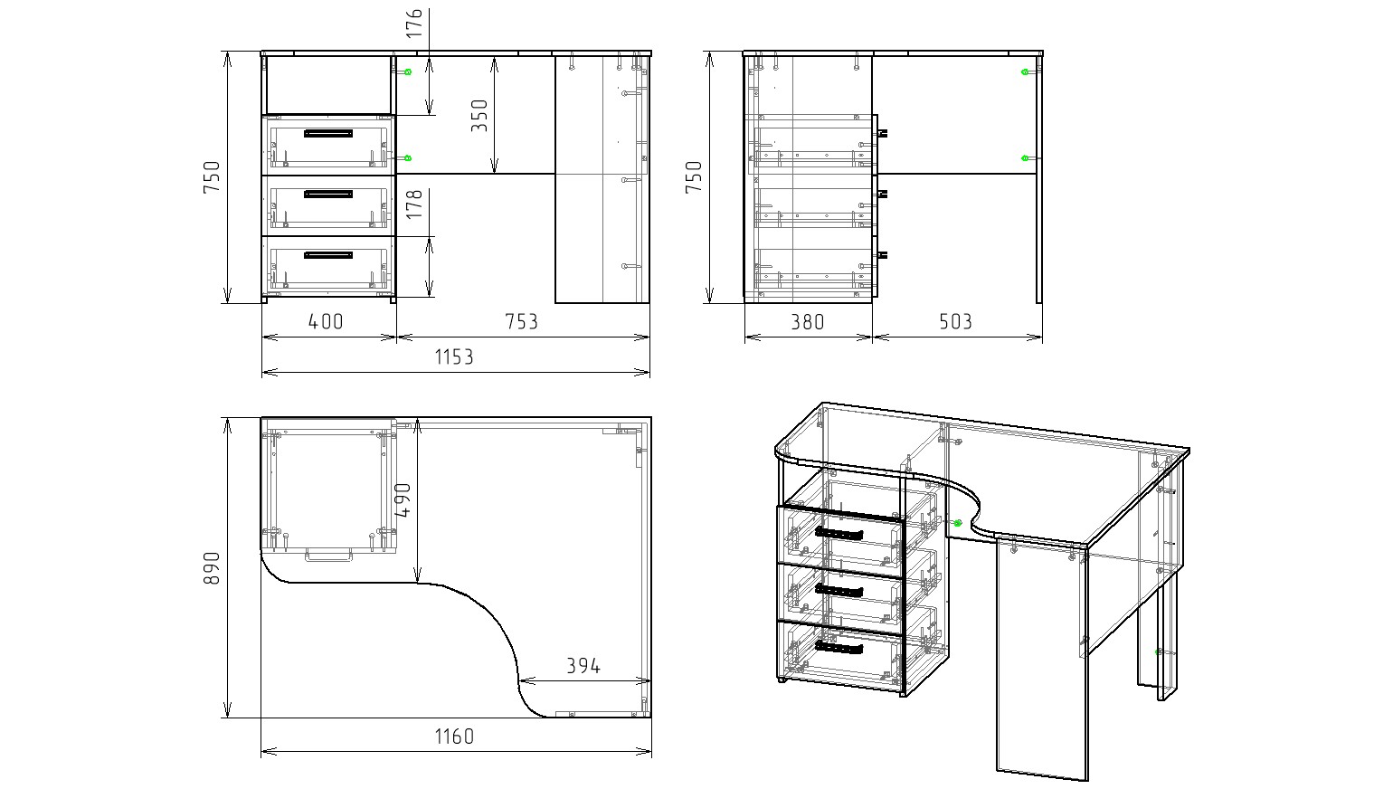 * В стол встроены три выдвижных ящика на шариковых направляющих.
