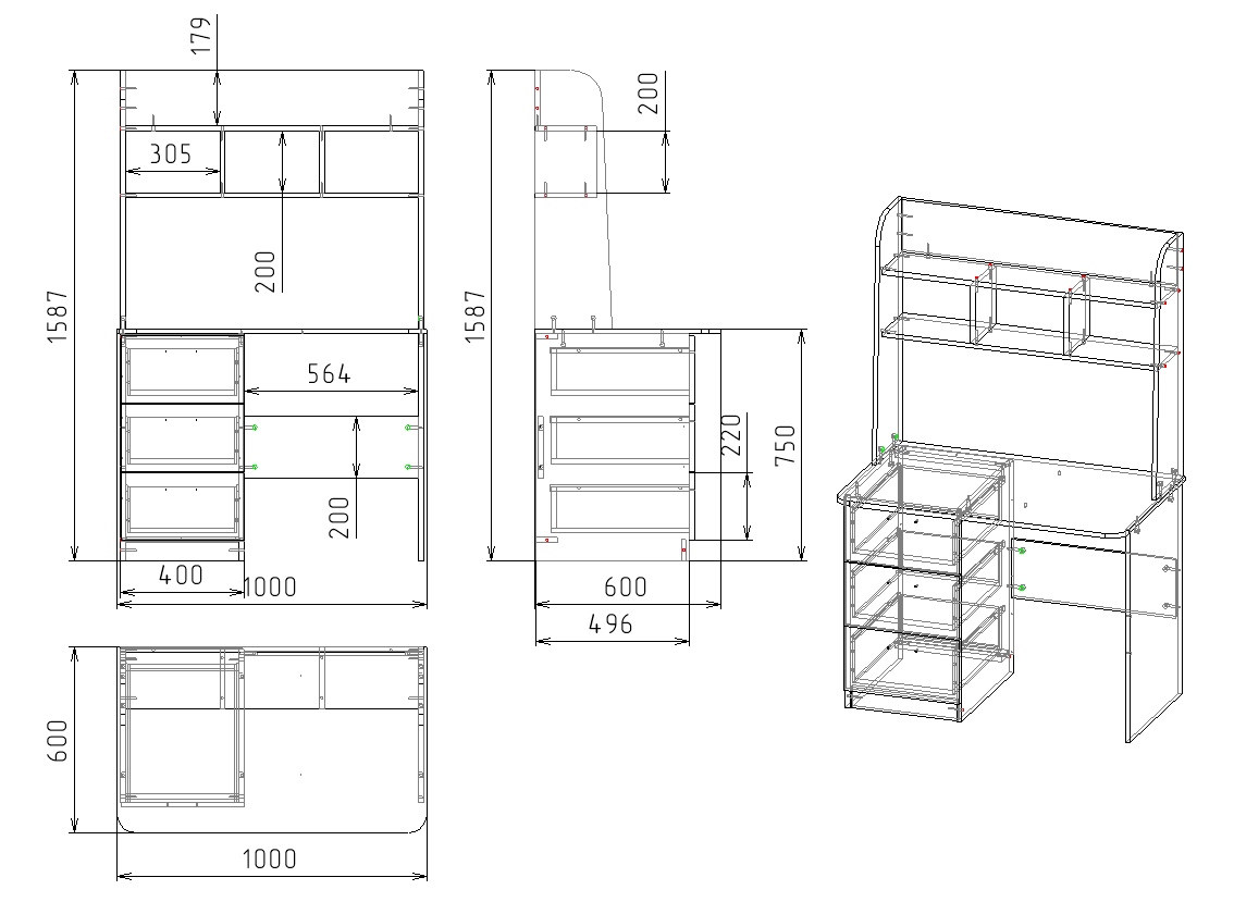 Габариты стола: ширина 1000 х высота 1550 х глубина 600