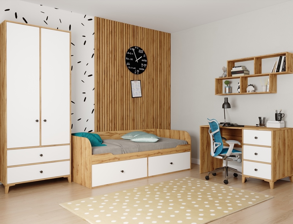 Комплект мебели для детской комнаты: диван Кэви + стол + шкаф Альви