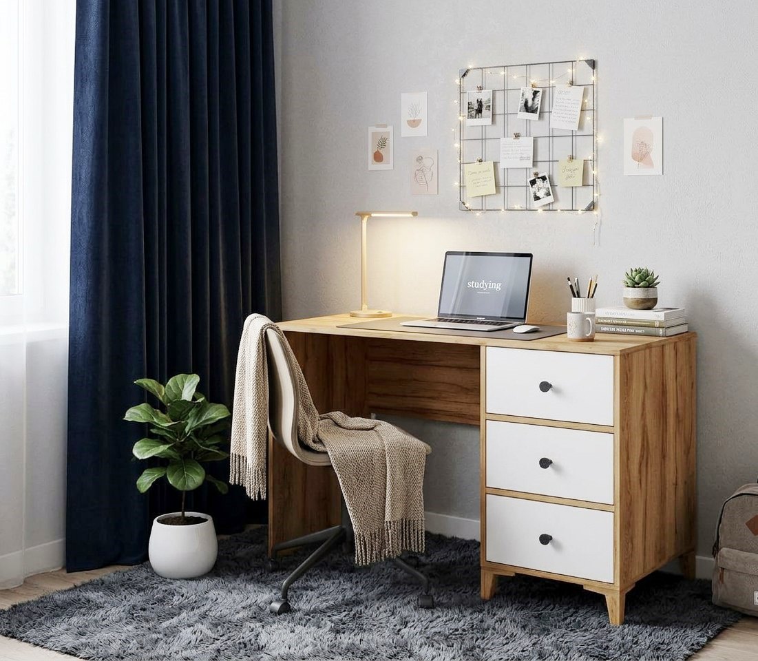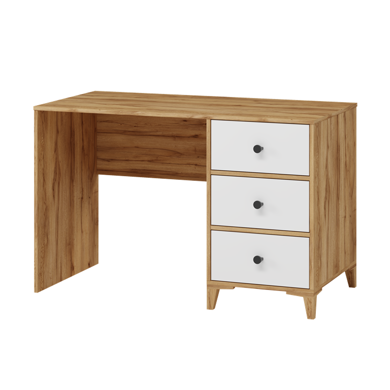 В стол встроены три выдвижных ящика на направляющих скрытого монтажа с доводчиками.