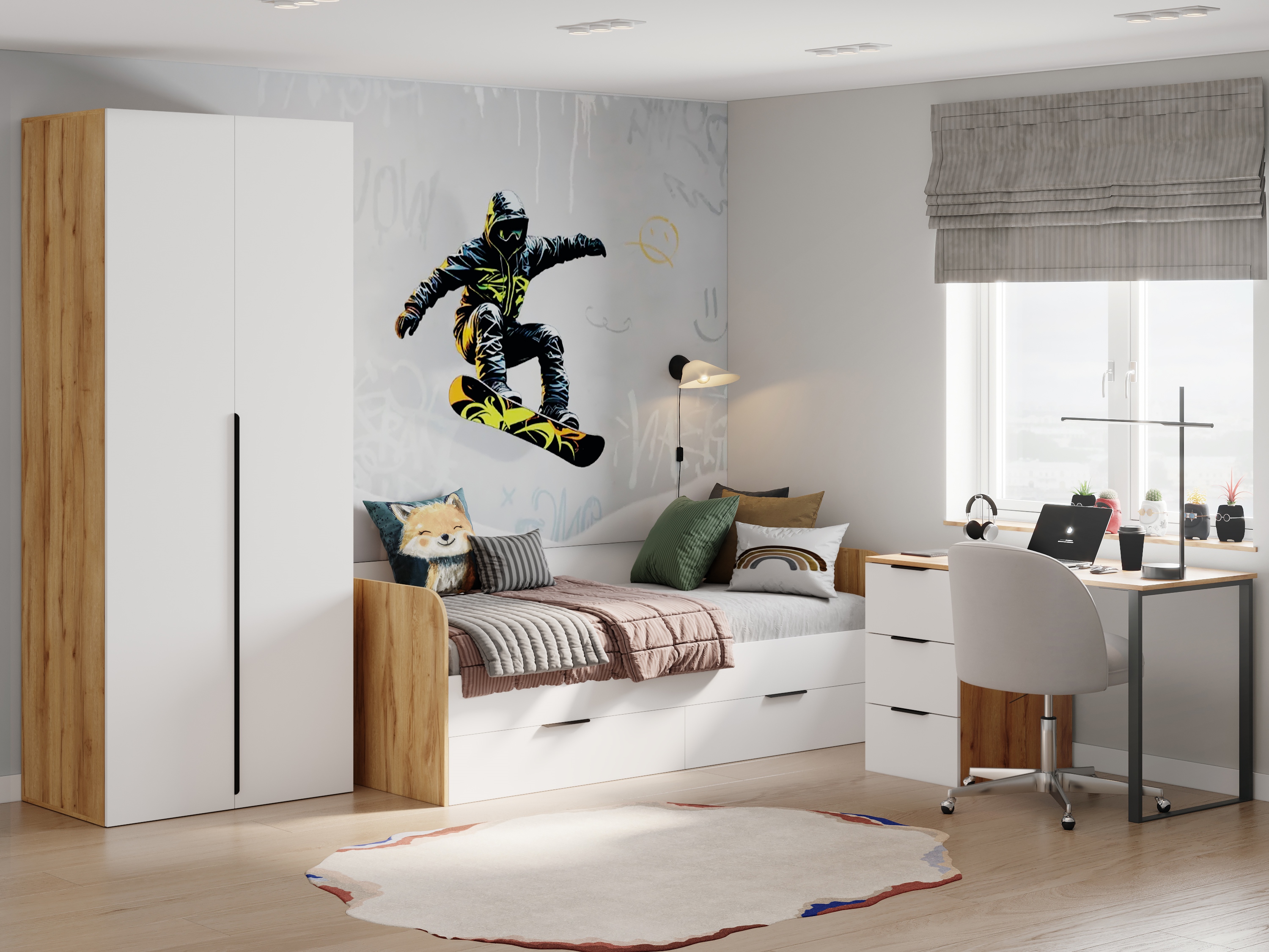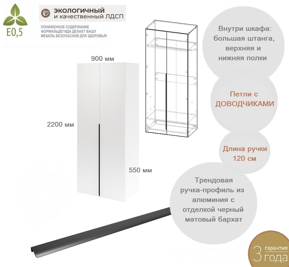 ЛДСП Е0,5. Толщина 16 мм. МЕБЕЛЬ ДОСТУПНА В РАСЦВЕТКАХ: корпус дуб золотистый + фасады графит, корпус дуб золотистый + фасады белые, корпус белый + фасады графит, полностью белый или полностью велюр