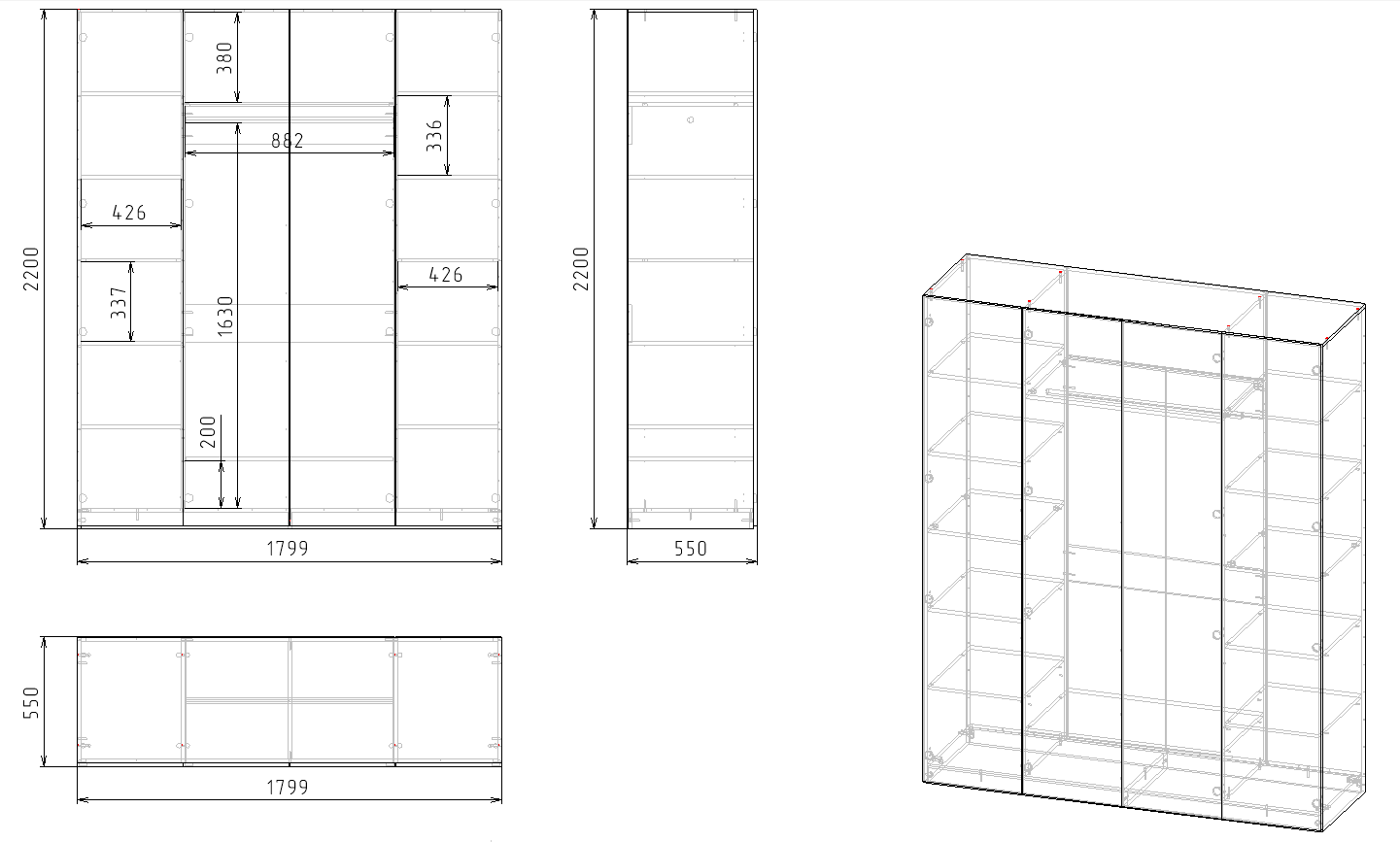 Четырехдверный распашной шкаф коллекции мебели Брайт Графит - функциональное решение для хранения одежды, обуви и аксессуаров.