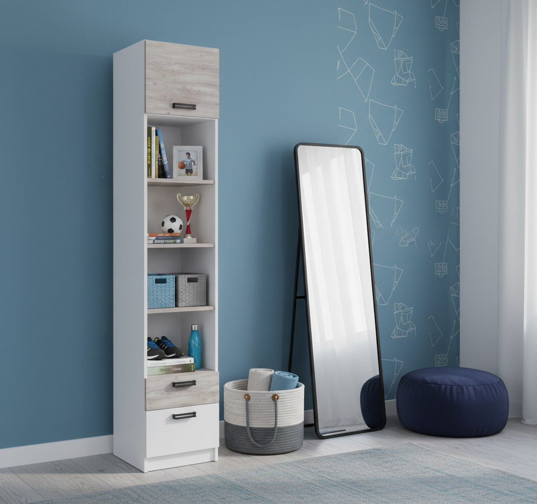 Стеллаж открытый коллекции мебели Гранд - функциональное дополнение в интерьере комнаты вашегоребенка.