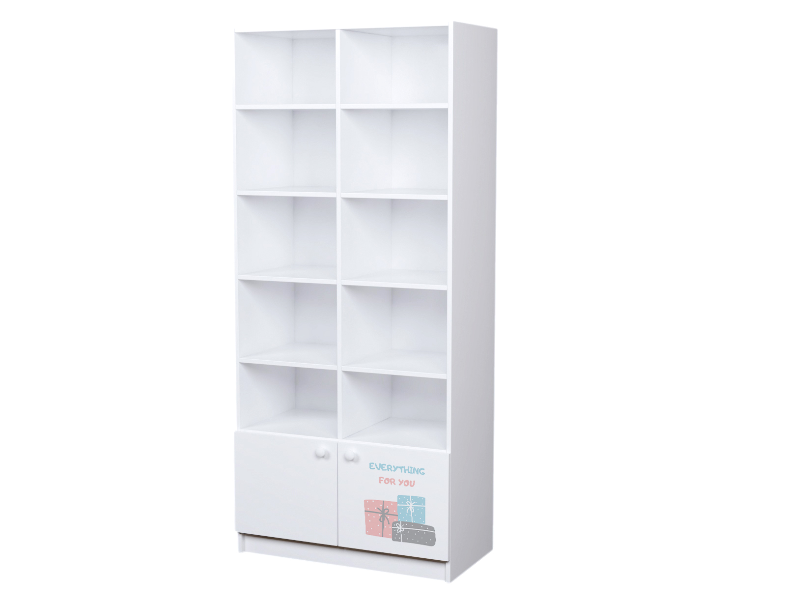 Вместительный стеллаж позволит разместить множество полезных для ребенка вещей.