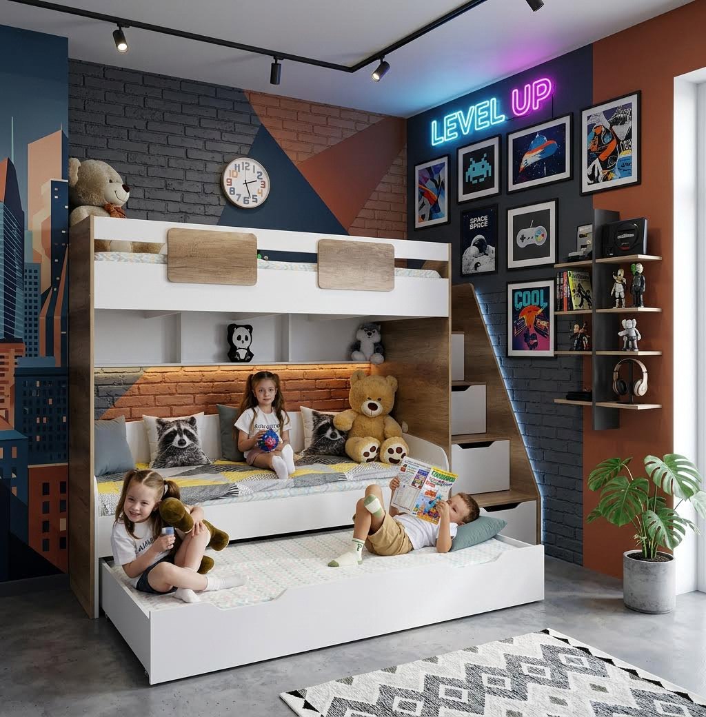Вместо них - цельный и прочный настил из ЛДСП, который выдерживает сверхвысокую нагрузку и позволяет расположиться даже взрослому с ребенком.