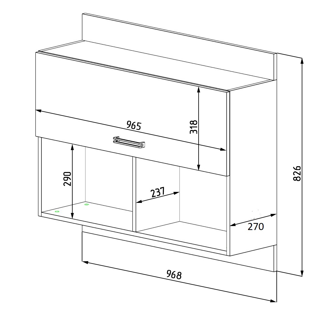 Габариты полки: ширина 968 х высота 826 х глубина 270 мм
