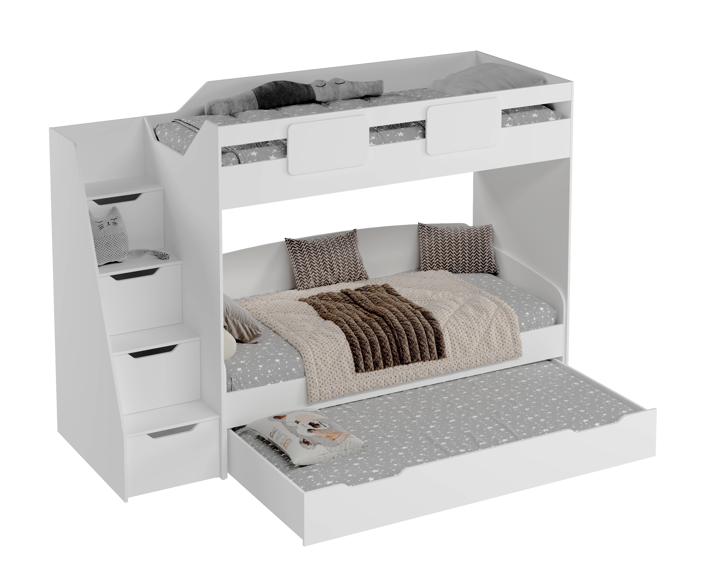 Вместо них - цельный и прочный настил из ЛДСП, который выдерживает сверхвысокую нагрузку и позволяет расположиться даже взрослому с ребенком.