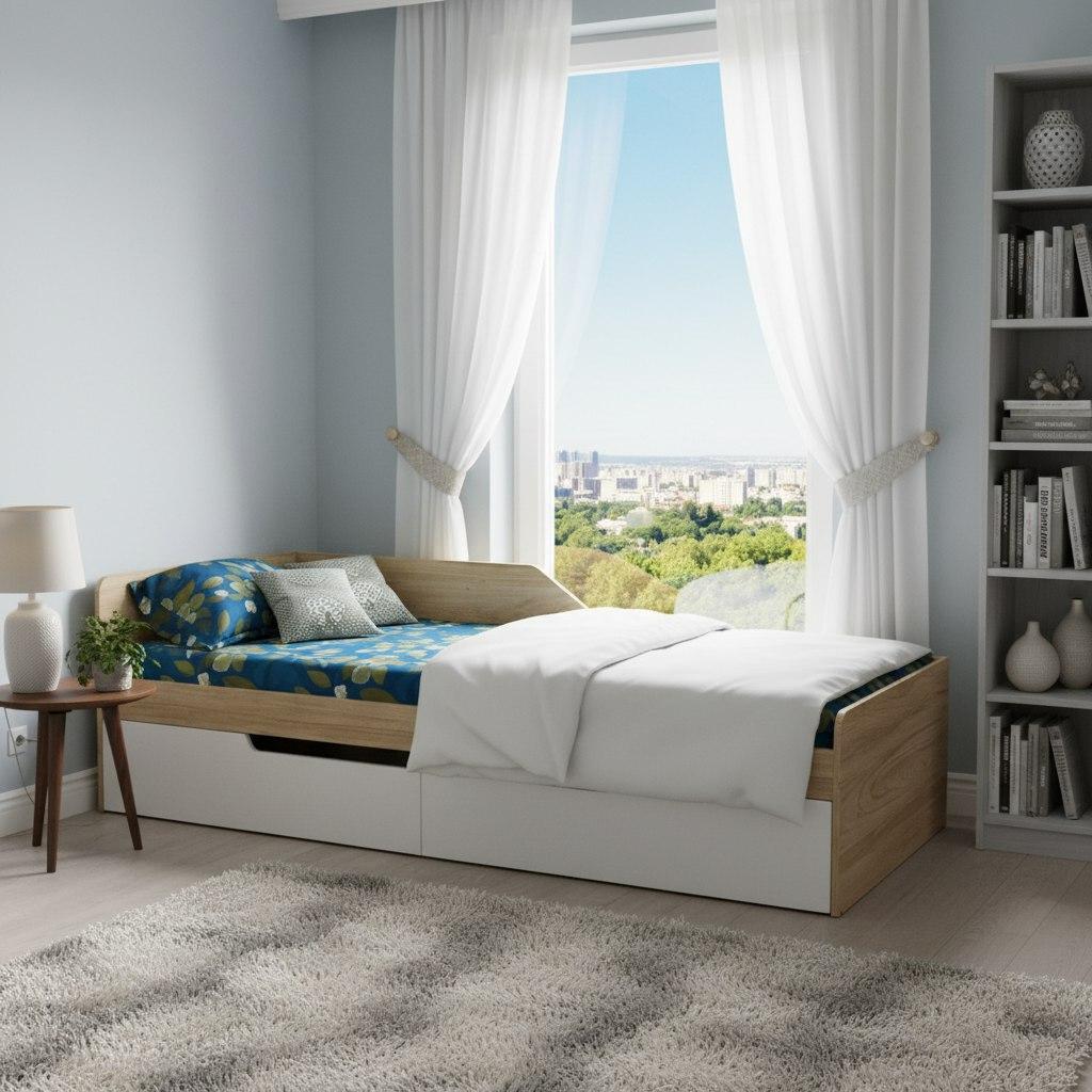 * В кровать встроены два выдвижных ящика на шариковых направляющих полного выдвижения.