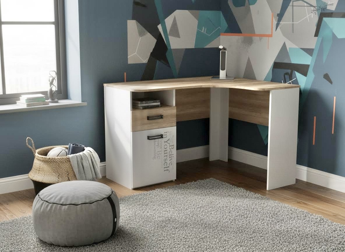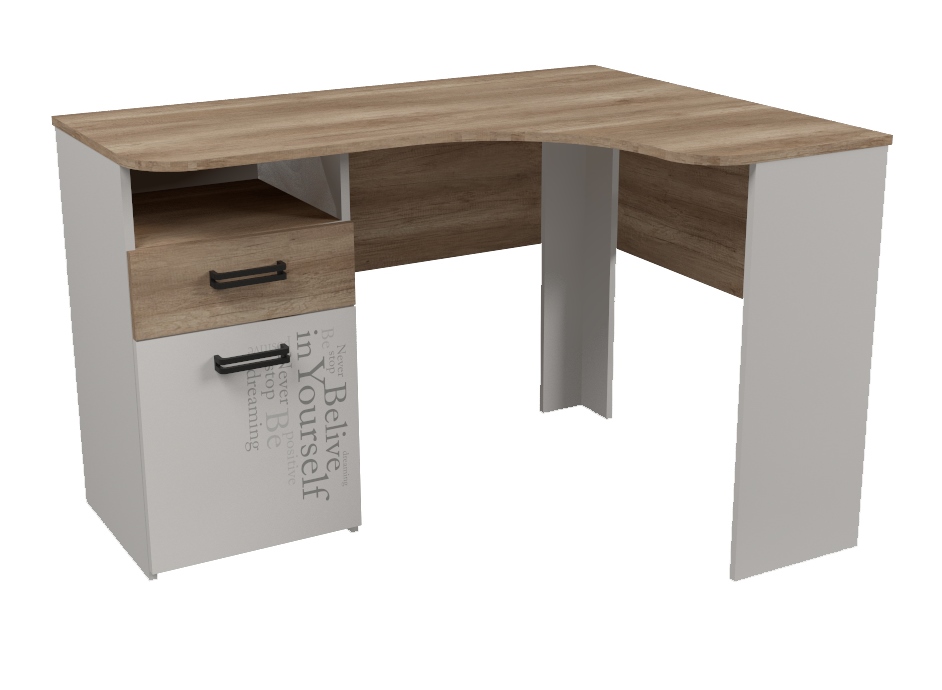 Мебель выполнена из сертифицированного, качественного, экологически чистого ЛДСП класса Е0,5 в сочетании цветов "дуб каньон + белый" и оформлена дизайнерским принтом.