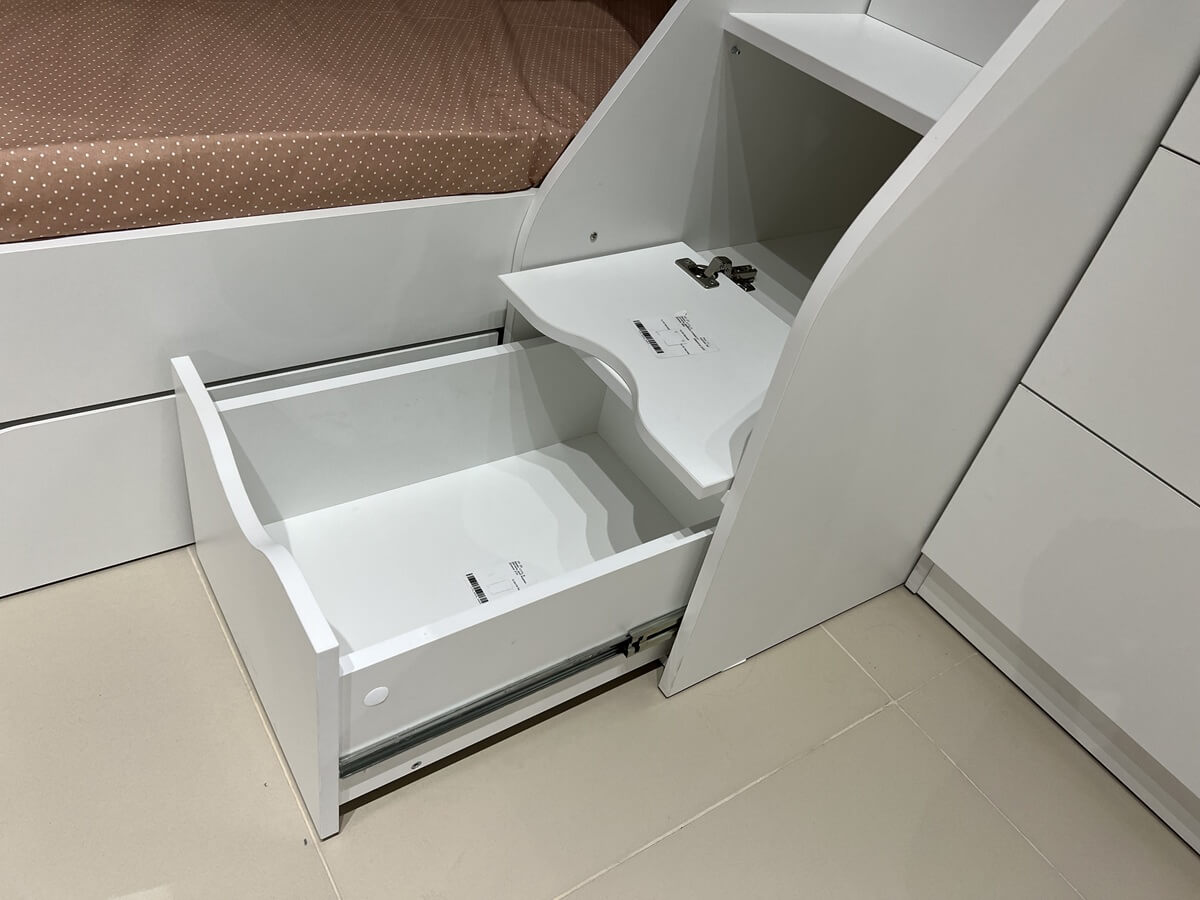 Вместо них - цельный и прочный настил из ЛДСП, который выдерживает сверхвысокую нагрузку и позволяет расположиться даже взрослому с ребенком.