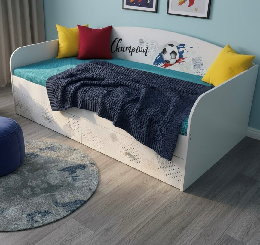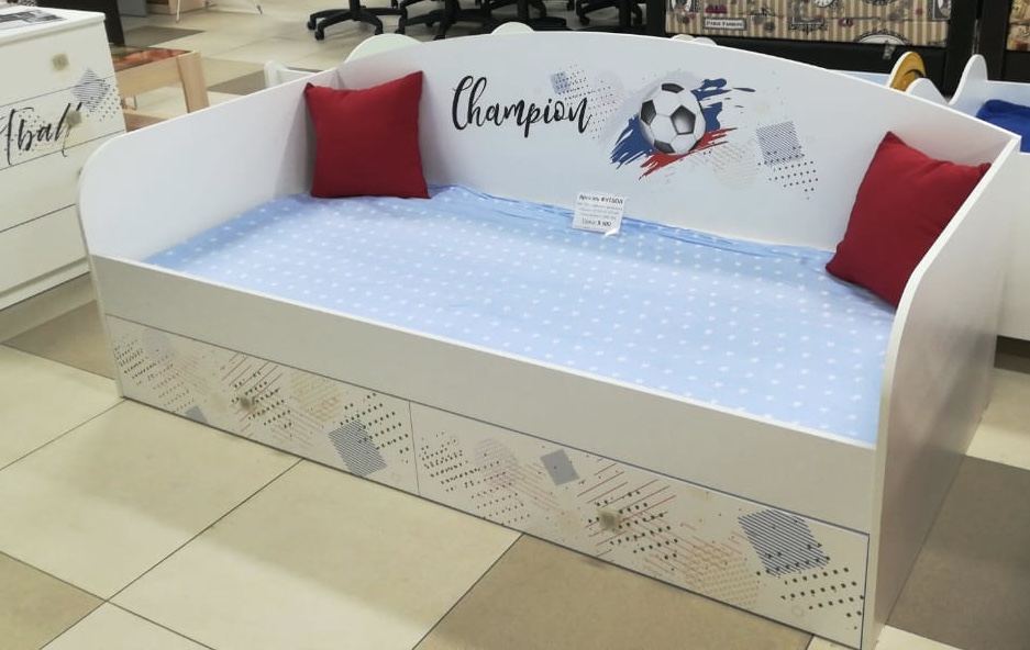Кровать в современном дизайне превосходно дополнит интерьер комнаты юного спортсмена.