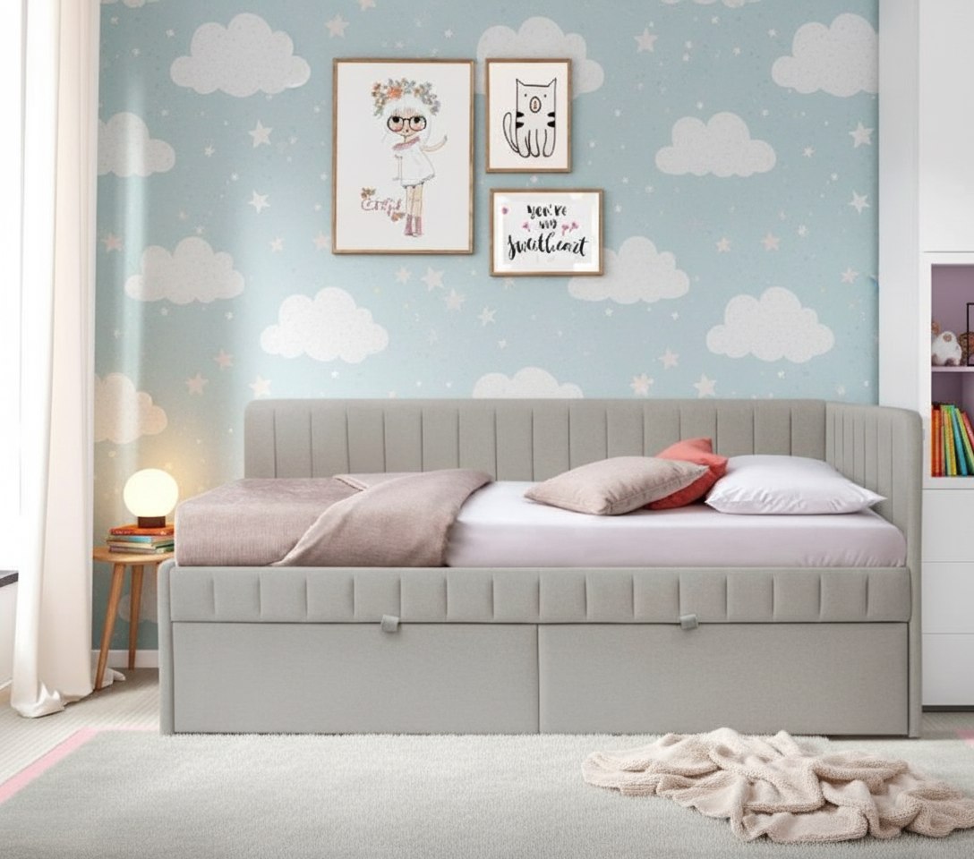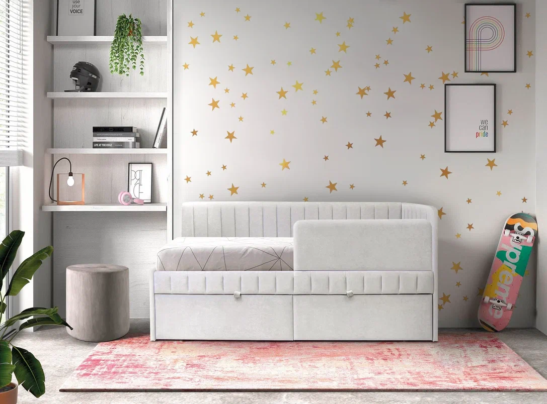 Очень уютный, компактный и стильный диванчик станет прекрасным спальным местом в комнате ребенка.