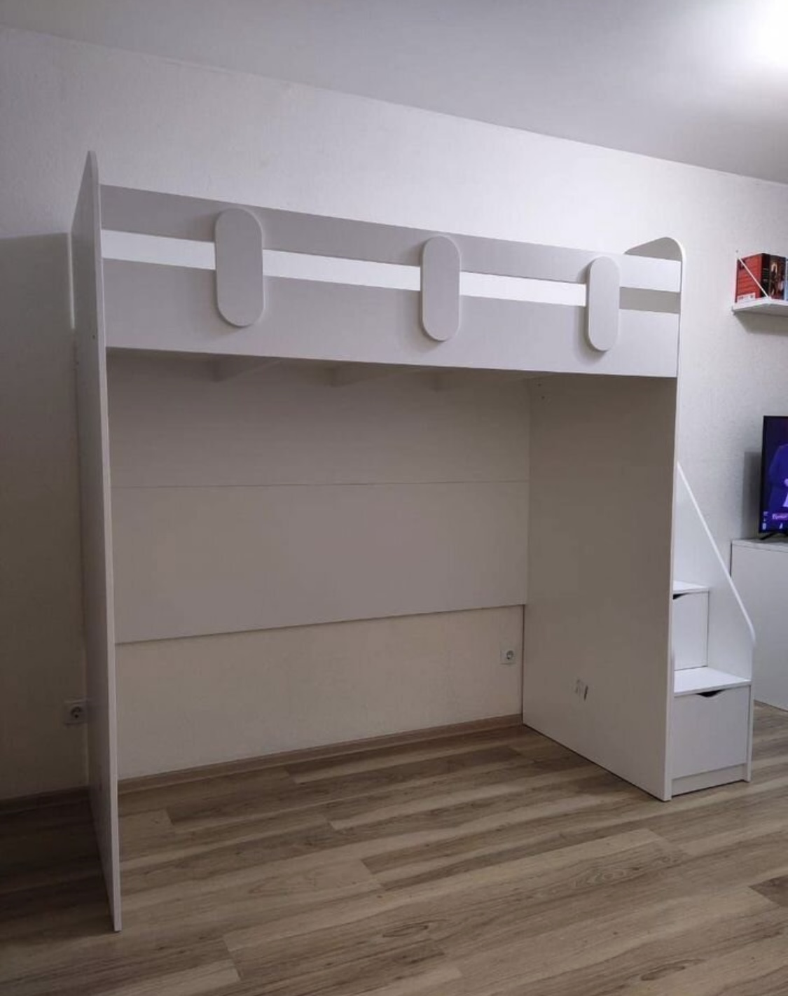 Вместо них - цельный и прочный настил из ЛДСП, который выдерживает сверхвысокую нагрузку и позволяет расположиться даже взрослому с ребенком.