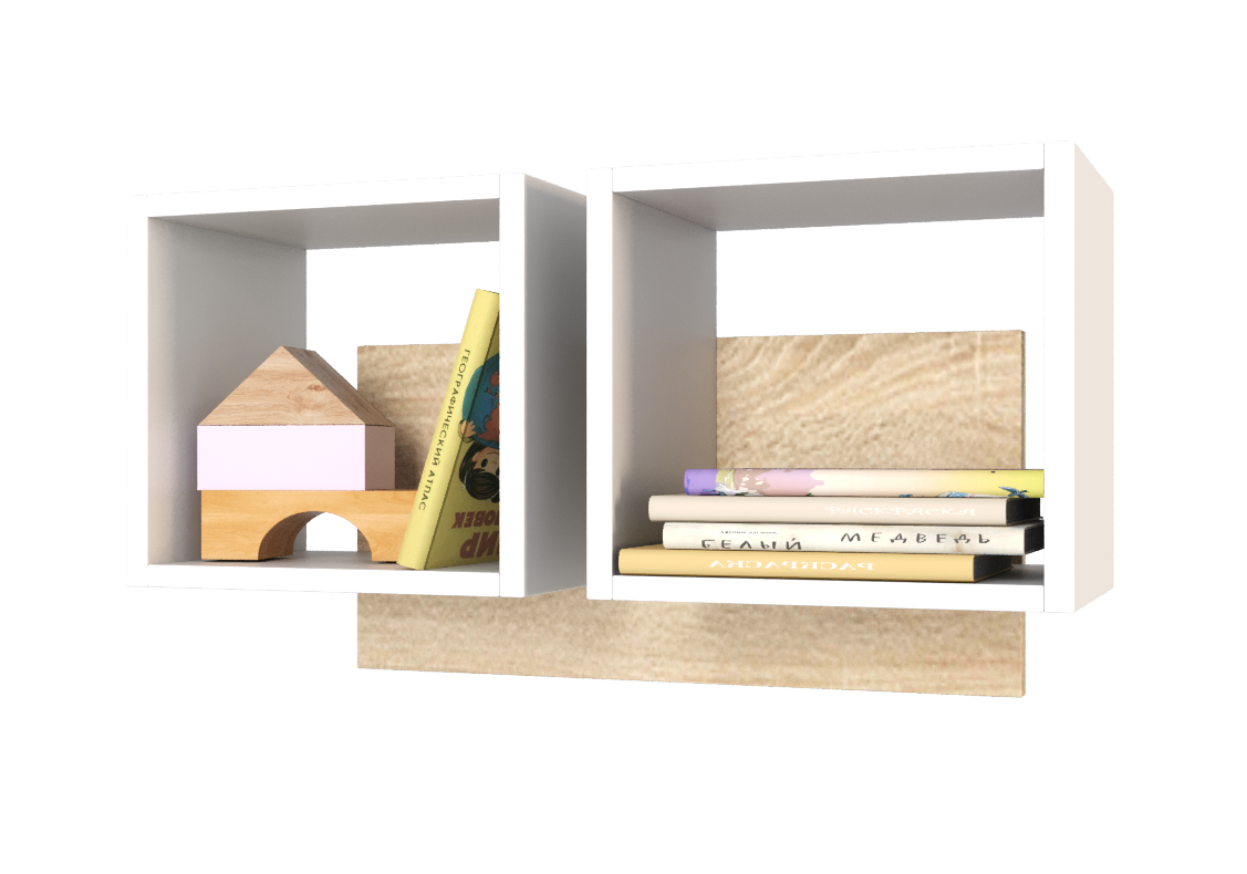 —Полка настенная Квадрат-2 (дуб сонома+белый) 744 мм