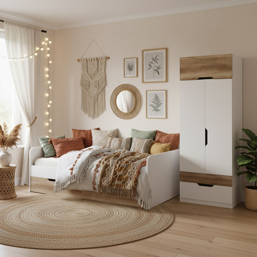 Мебель выполнена из сертифицированного, качественного, экологически чистого ЛДСП Е0,5 в сочетании цветов дуб каньон + белый